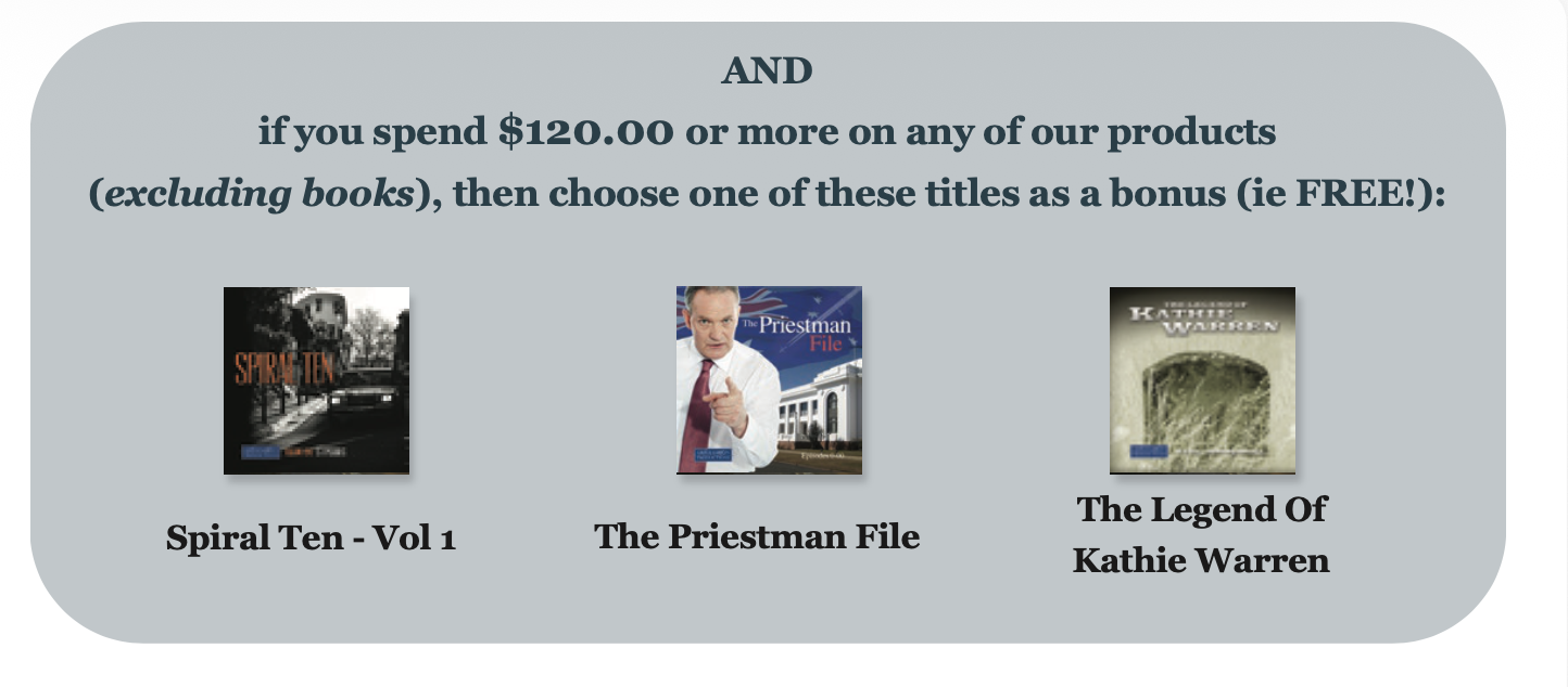 Grace Gibson Productions, PO Box 7377, Leura NSW 2780. If sending a cheque or money order please ensure you nominate what you are ordering and include your address details for dispatch. If you do not wish to receive further updates, please email us at info@gracegibsonradio.com with REMOVE in the title line and include your details, or phone us on (02) 9906-2244 or fax on (02) 9906-2114. A Few Important Notes… Please Consider Carefully Before Ordering: mp3 Format on CDs (may not play in some CD players); mp3 on USB Flash Drives; m4a (AAC) on Downloads